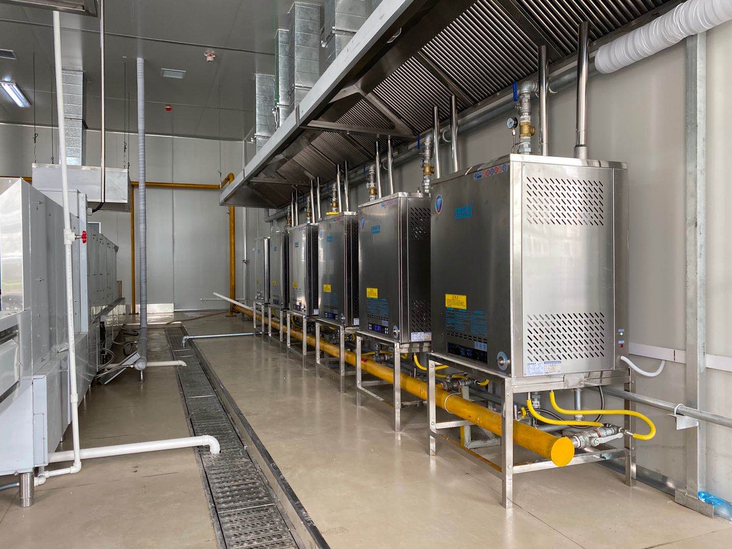采用卓益150型高溫蒸汽機及雙膽熱水機為中央廚房提供高溫蒸汽和熱水。
