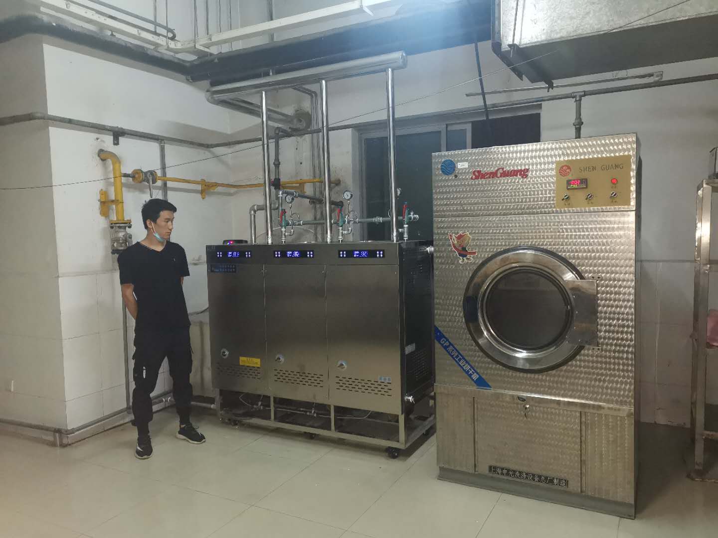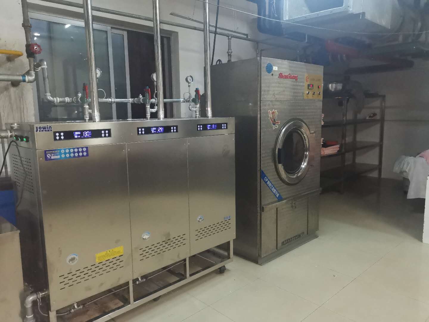 北京理工大學洗衣房,采用卓益三膽模塊蒸汽發生器為烘干機提供蒸汽,蒸發量高達200KG/H,承壓4公斤,蒸汽溫度最高可達150℃。