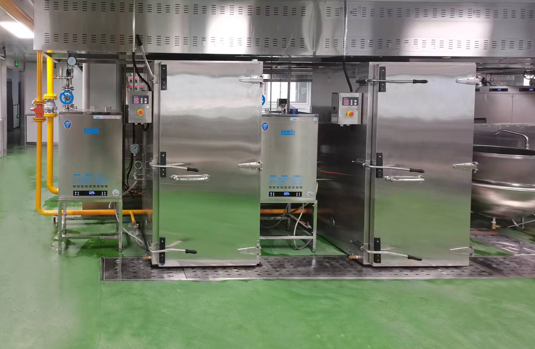 漢中中央廚房項目,卓益蒸汽發生器配的洗筐機,蒸箱和瓢湯線